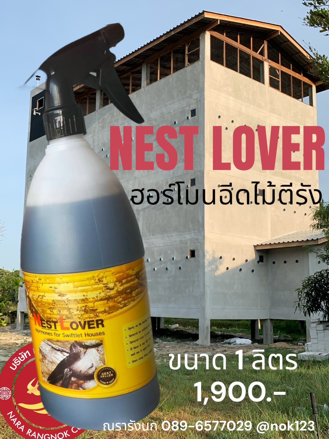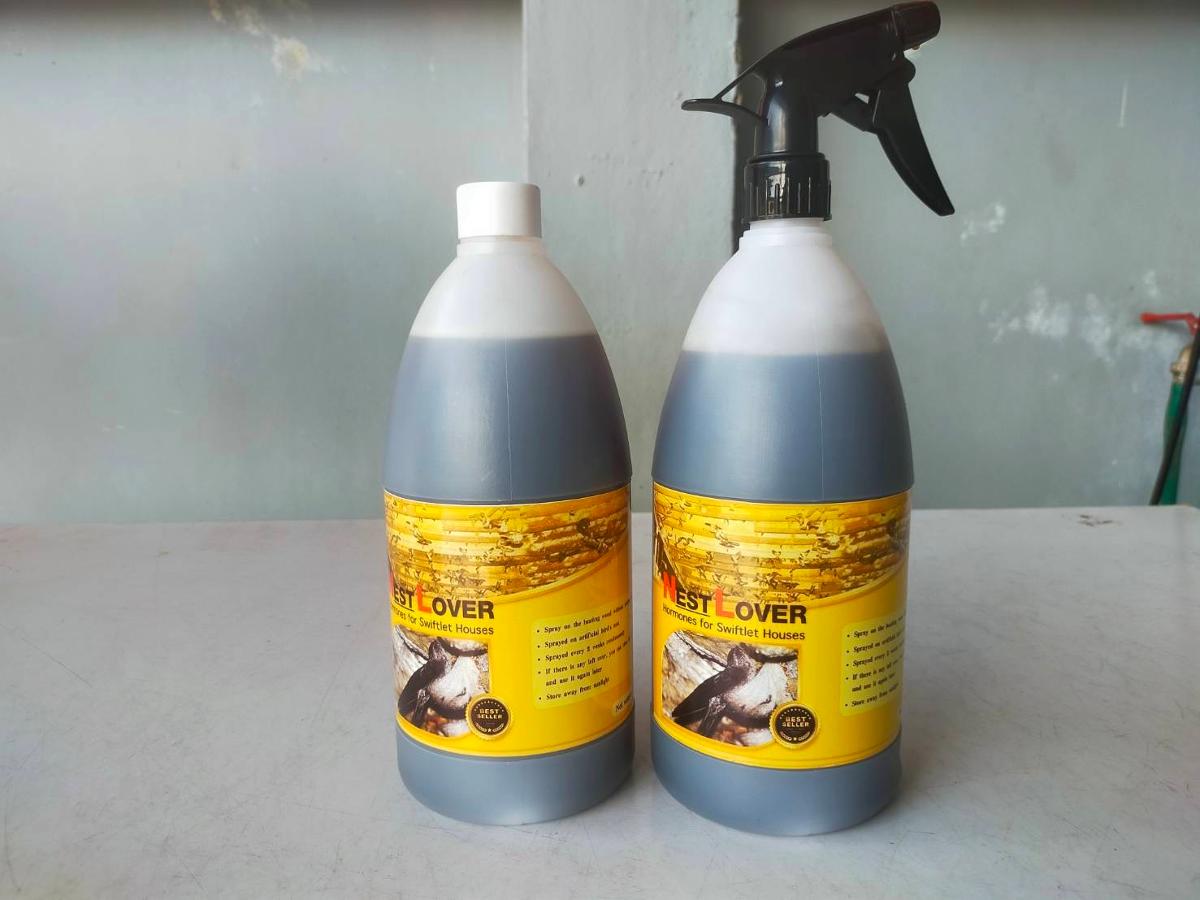 อีเมลล์: swiftletthailandshop@gmail.comNEST LOVER ฮอร์โมนฉีดไม้ตีรังยอดนิยม ดึงนกนอนทำรังรวดเร็ว 1 ลิตร การใช้งานโดยฉีดพ่นบนไม้ตีรัง ไม่ต้องผสมน้ำ จะช่วยดึงดูดนกให้นอนทำรังได้อย่างรวดเร็ว